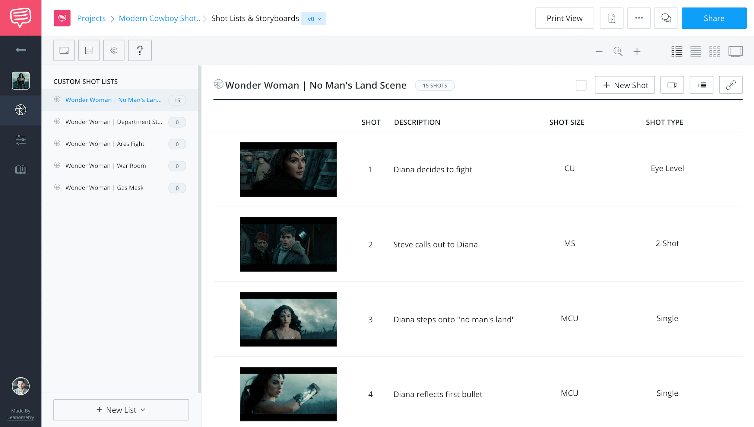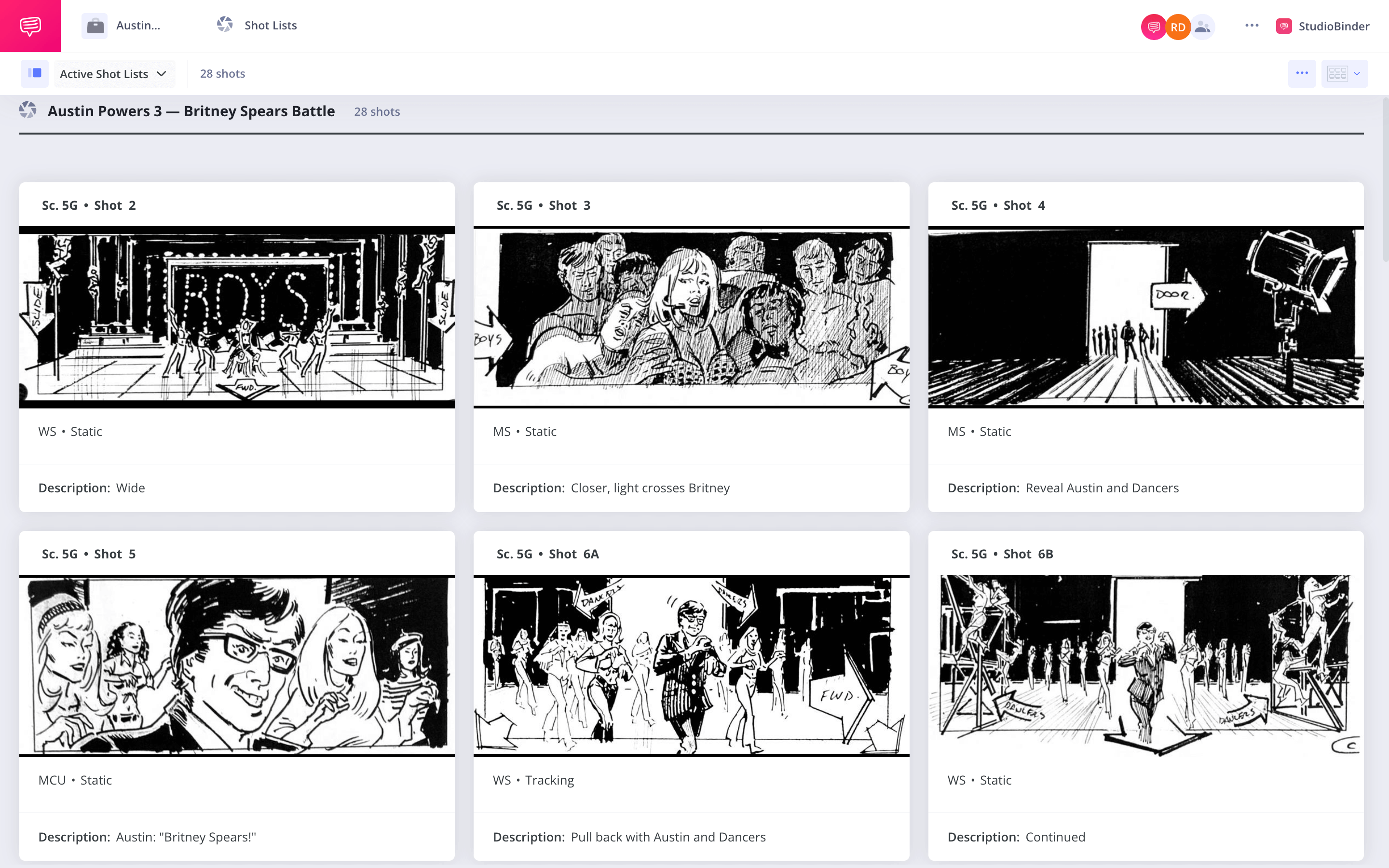 Create robust and customizable shot lists. Upload images to make storyboards and slideshows.